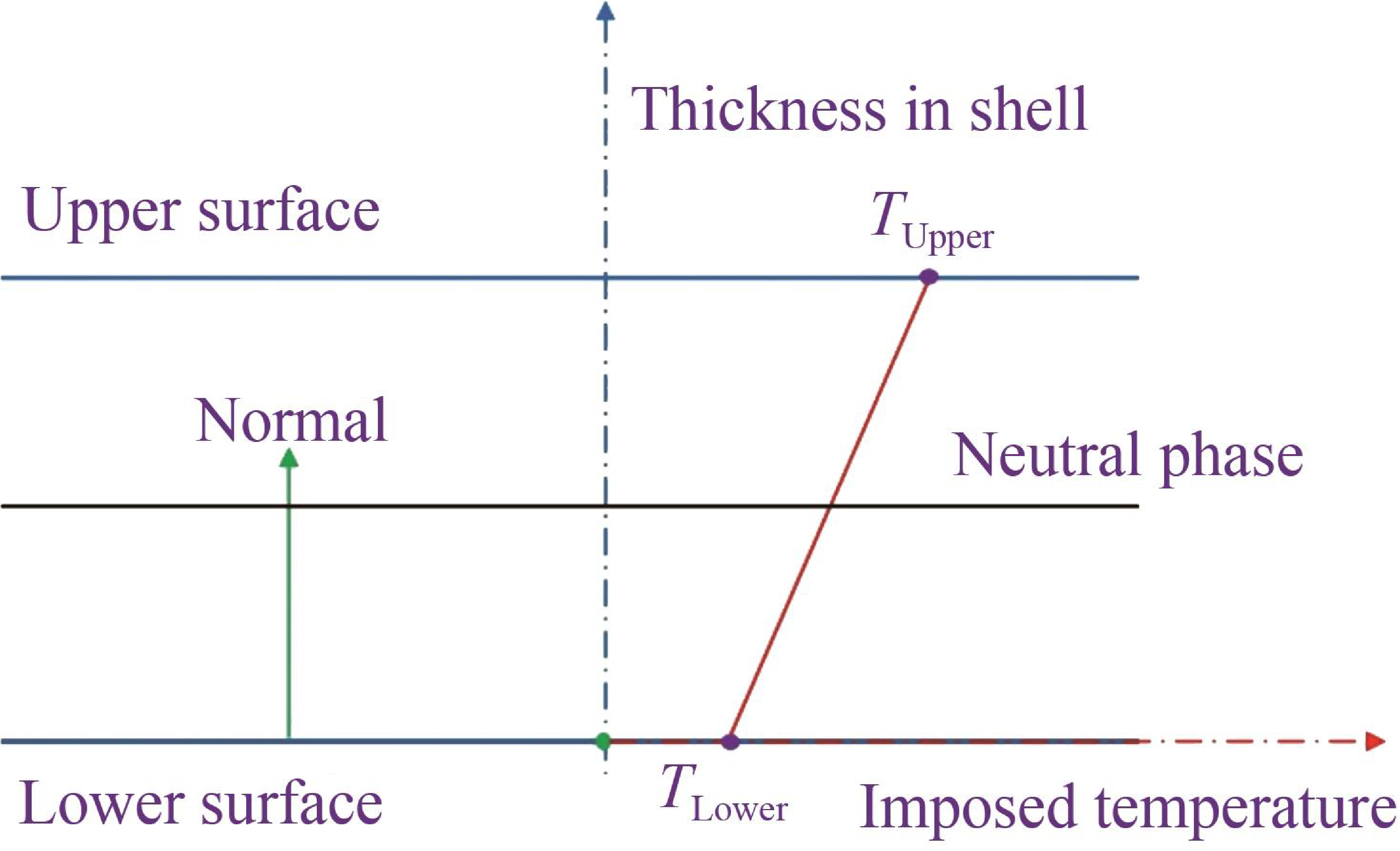 $$\Delta T=T_{\text {upper }}-T_{\text {lower }}$$ (16) where Tupper and Tlower are the temperatures of the upper and lower surfaces of the shell element model, respectively.