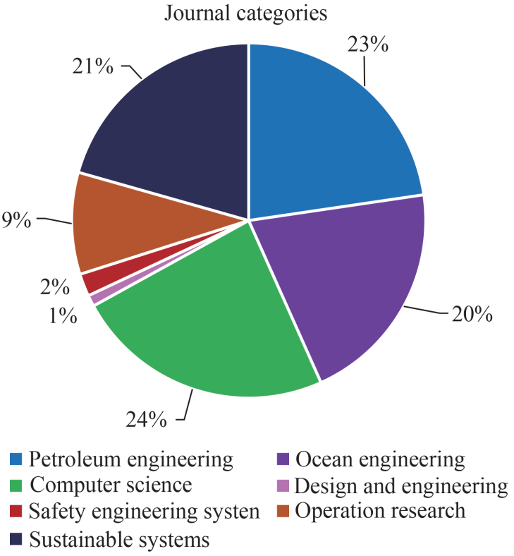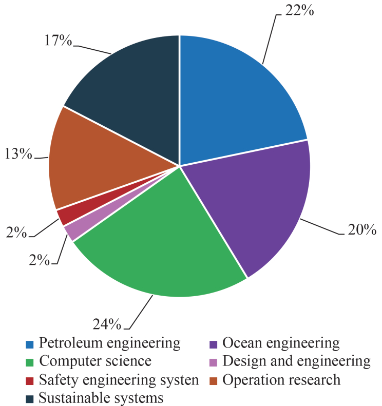 • Most of the scientific papers were published in the following four areas of journals: Computer Science (24%), Petroleum Engineering (23%), Sustainable Systems (21%), and Ocean Engineering (20%).