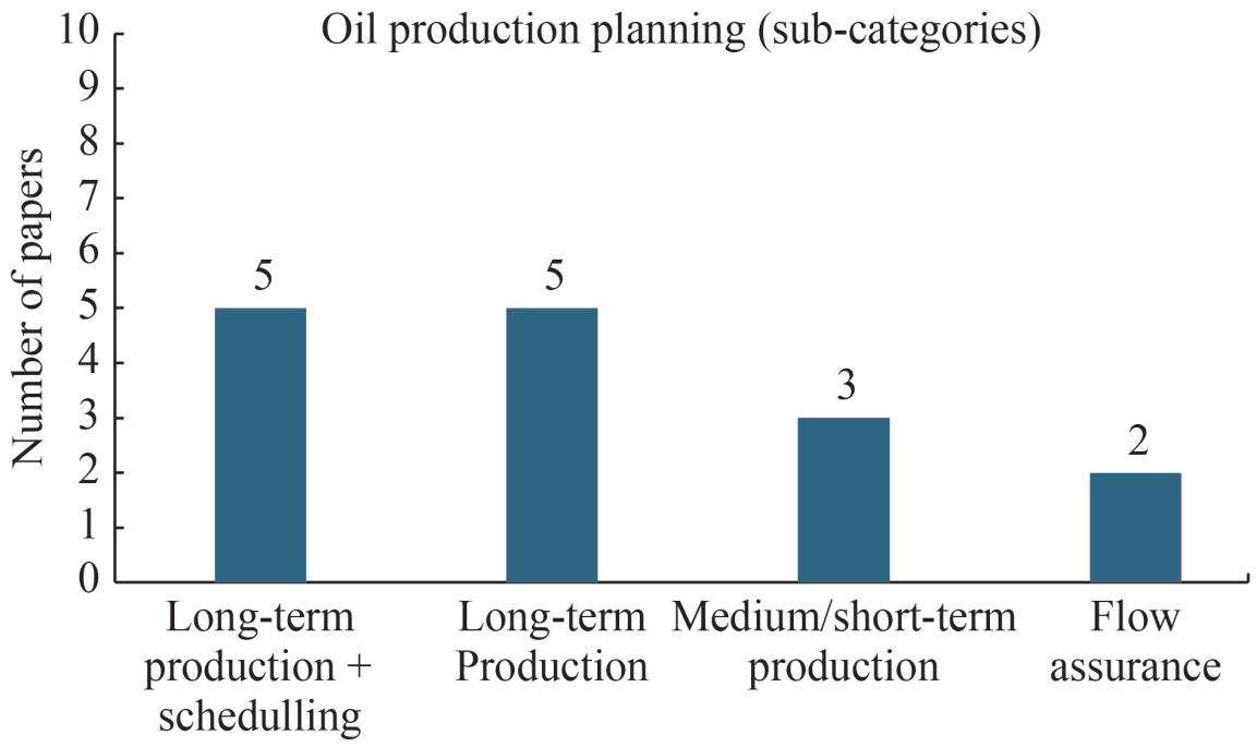 The works published in this subcategory are: Ortíz-Gómez et al. (2002), Mohammadzaheri et al. (2016), Camponogara et al. (2018), Sales et al. (2021), Bilal et al. (2021). All of these studies attempted to analyse and estimate oilfield production over the long term.