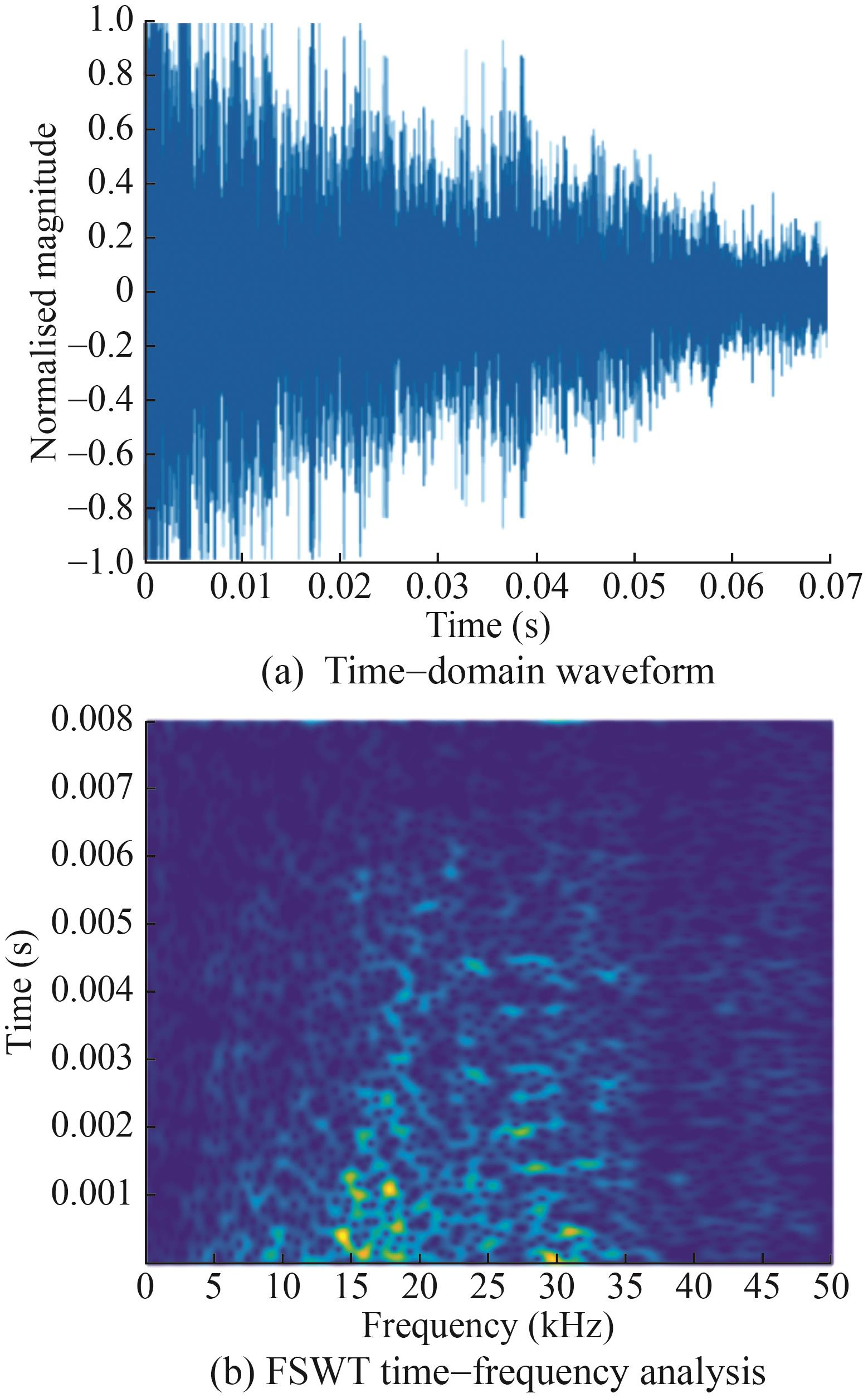 The frequency sliced wavelet transform (FSWT) algorithm offers superior resolution in the time-frequency images of time delay signals, making it widely applicable in fields such as medical signal processing and power system analysis (Zhao et al., 2019). Sheng et al. (2021) leveraged the unrestricted filtering properties of FSWT to reconstruct and extract composite spectral boundaries. Additionally, Hu et al. (2021) successfully extracted subcomponents containing fault information from bearing vibration signals by integrating FSWT with an improved particle swarm optimization algorithm and empirical wavelet transform.