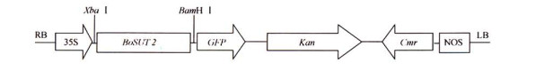 图 5 BoSUT2:GFP融合植物表达载体 Figure 5 Confusion expression vector of BoSUT2:GFP |