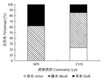 2.5 数据处理利用SPSS13.0进行One-way ANOVA方差分析,比较不同群落类型间的差异。