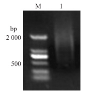 | 图 2 双链cDNA电泳图 Fig. 2 Electrophoresis of double- strand cDNAM:DL2000 marker;1:双链cDNA Double-strand cDNA |