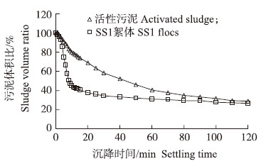 | 图 2 SS1絮体与普通活性污泥的沉降性能比较 Fig. 2 Comparison of the settling properties of SS1 flocs and conventional activated sludge |