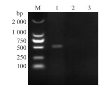 图 3 pVAX-EaUCE肌肉注射后转录情况检测 Figure 3 Transcription detection of pVAX-EaUCE in injected muscles by RT-PCR M. DNA标准品DL2000;1.注射pVAX-EaUCE肌肉; 2.非注射肌肉; 3.注射pVAX1肌肉。 M. DNA marker DL2000;1. RT-PCR product of chicken muscle injected with pVAX-EaUCE; 2. RT-PCR product of non-injected chicken muscle; 3. RT-PCR product of muscle injected with pVAX1 plasmid. |