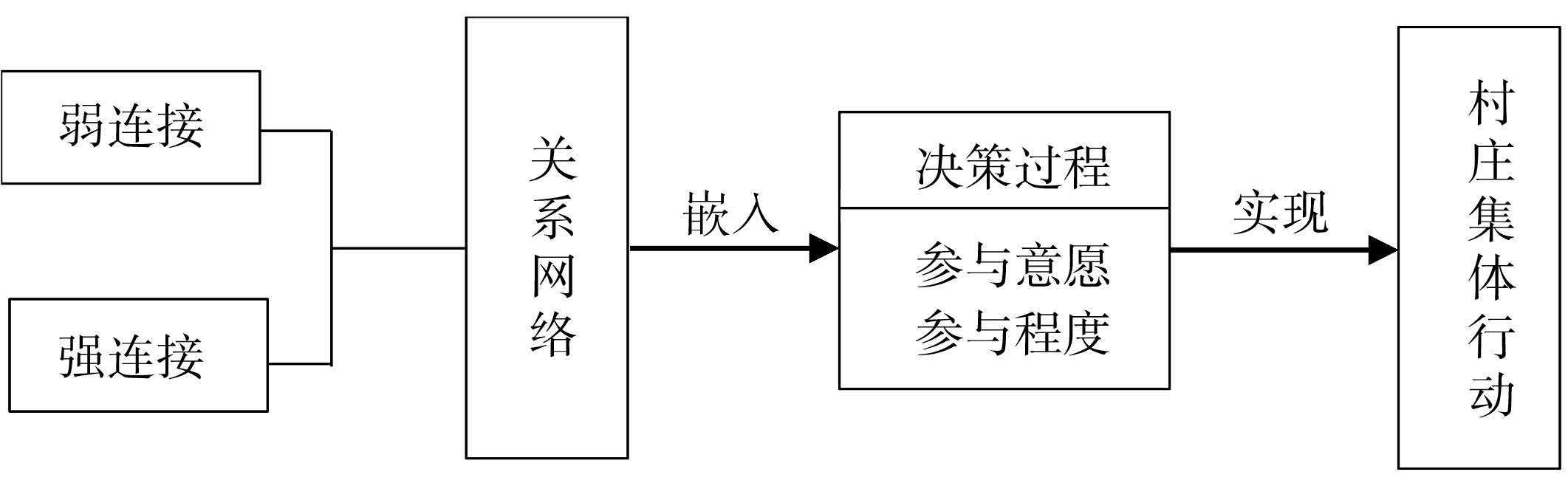 二、 理论分析框架由于农户参与小型农田水利建设投资这一村庄集体行动的决策过程,包括农户参与村庄集体行动的意愿和程度两个阶段,因此,本文在区分两者的基础上,从理论上剖析关系网络对农户参与村庄集体行动的作用机制。