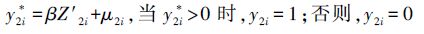 基于本文的样本选择机制,依据Heckman[32] 和Greene[33] 的研究,以y1i 代表农户参与村庄集体行动的程度,以y2i代表农户参与村庄集体行动的意愿,以X1i代表包括关系网络变量以及个人特征、家庭特征与村庄特征等一系列自变量,以Z2i 代表包括X1i 和识别变量在内的一系列自变量,进而构建如下模型: