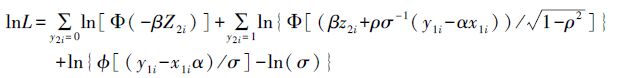 式(3)中,lnL 表示似然函数的对数值,Φ(·)和ϕ(·)分别表示标准正态分布的累积分布函数和概率密度函数,其他符号含义同前所述。根据式(3),利用极大似然估计法,可求得本文实证研究所需的相关参数。