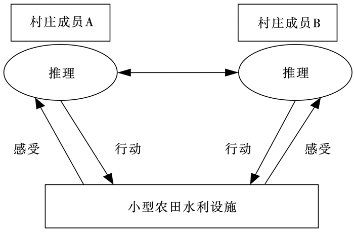 二、公平互利行为与小型农田水利设施自愿合作供给 (一) 集体行为的行为人模型传统经济学假定人是拥有充分信息的理性经济人,理性经济人从自身成本收益出发进行决策、采取行动以最大化自身预期利益,而不受信息及其他人的影响,由于小型农田水利设施在一定范围内具有非排他性、非竞争性,其具有准公共物品属性,因此,理性经济人在小型农田水利设施供给中倾向于“搭便车”,最终结果导致小型农田水利设施管理与维护陷入困境,在小型农田水利设施供给中合作与集体行动无法实现。理性经济人模型能描述高度竞争市场中人的行为,但它对不同集体行为决策环境下的行为描述并不能让人满意。行为经济学发现,在需要合作采取集体行动供给公共物品时,人不是严格意义上的理性经济人,而是行为人,行为人除了满足最大化假定效用外,还具有反应性(对环境变化自动反应),并能与其他行为人互动。由于农地分配细碎,小型农田水利设施供给需要村庄成员采取集体行动,村庄成员可能更满足行为人的假定,用集体行为的行为人模型更能解释村庄成员在小型农田水利设施供给中的相关行为,因此,本文借鉴波蒂特等人构建的两行为人之间的集体行为模型,分析村庄成员在小型农田水利设施供给中如何采取行动,研究影响小型农田水利设施合作供给的因素。