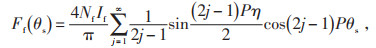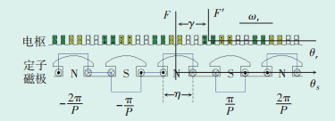 从图 6可以看出,励磁磁势在空间呈周期为2π/ P机械角度的矩形波,假设定转子间气隙均匀并忽略铁心的磁压降,以图中方式建立坐标系,在整个电动机圆周[-π,π]区间内励磁磁势Ff(θs)可表示为: