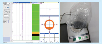 图中左侧区域显示定量检测结果,氧化皮堵管率为60%,试块检测结果为58%;氧化皮堵管率为20%,试块检测结果为21%。检测数据偏差较小,满足现场检测要求。