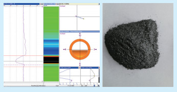 | 图 6 末级过热器管内氧化皮堵塞率为11.3%及现场割管清理出的氧化皮 |