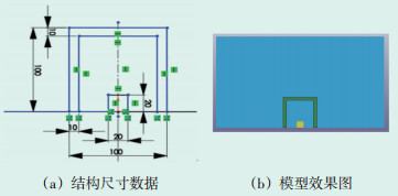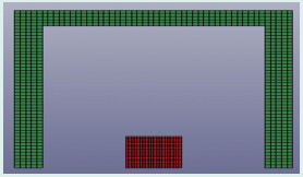 | 图 1 模拟炸药(黄色)、陶瓷(绿色)及空气(蓝色)的有限元爆炸模型 |