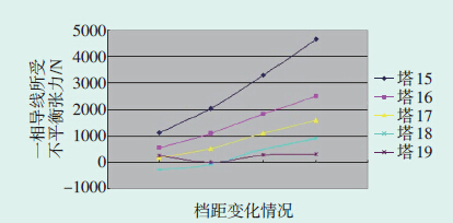 距的增大,导线所承受的最大不平衡张力逐渐增