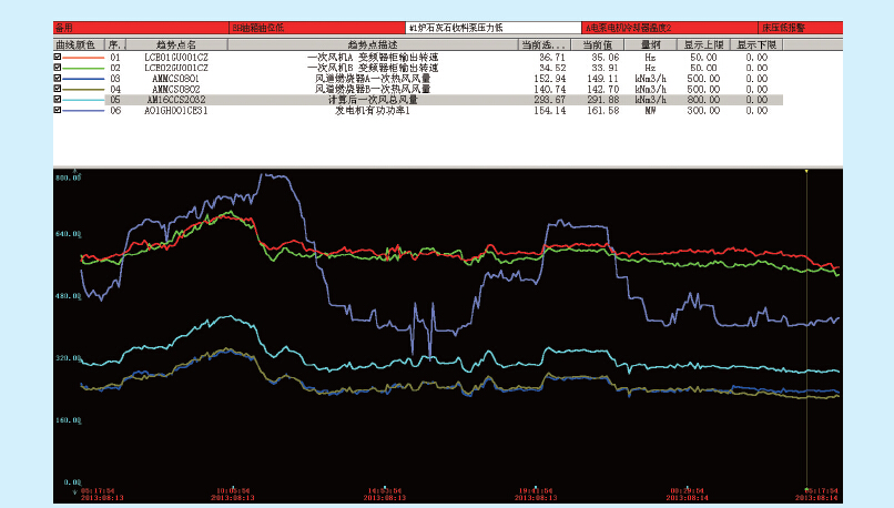 (1) 建立和设定了负荷与一次风总风量的折 线函数CHAMCS0103,并在其中附加了最小风量限 值,保证调节值不低于最小流化风量;