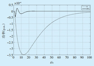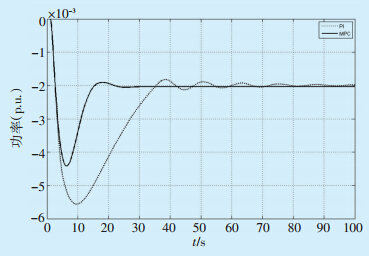 可以看出,MPC控制器对电网负荷随机干扰的 抑制能力要明显优于PI控制器。 4 结语