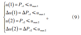 其中,umax1、Δumax1及umax2、Δumax2分别为区域1和 区域2的调节最大容量值与调节容量变化率限值。 3 仿真实例