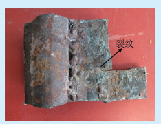 图 1 H型鳍片裂纹现场形貌 |