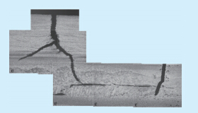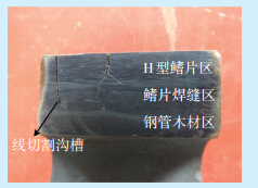 图 3 开裂的H型鳍片纵向截面宏观形貌 |