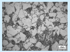 对开裂的水冷壁H型鳍片进行显微组织分析,结果见图 4,可以发现裂纹已扩展至鳍片与管子母 材的焊缝处,裂纹有分叉,尖端圆钝,内部充满高温 氧化产物;裂纹断续扩展,具有典型的热疲劳裂纹 特征[2]。鳍片由于高温氧化,出现严重的脱碳和老 化现象(见图 5)。水冷壁钢管母材组织良好,基本 未老化(见图 6)。