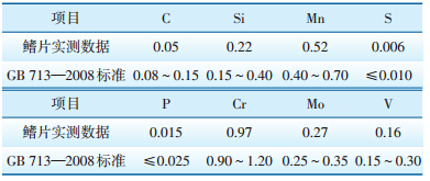 | 表 1 开裂水冷壁H型鳍片各化学成分质量分数 % |