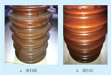 图 4 清扫前、后的绝缘子 |