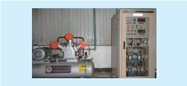 在半年后的机组临修期间,L1相封闭母线受 潮,绝缘电阻降至2 MΩ,先用压缩空气吹风干燥,5 h后绝缘电阻仍为2 MΩ,后改用加热的压缩空气干 燥,24 h后绝缘恢复至420 MΩ,机组正常启动。 2 微正压装置作用