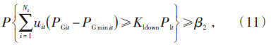 电网旋转备用容量是电网安全、稳定运行的基础。旋转备用容量与风电出力预测误差等不确定性信息有关,故本文采用机会约束规划方法处理风电的不确定性,具体如下。