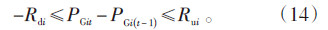 式中Plt-电网系统t时刻的负荷。 2.3.2 旋转备用容量约束