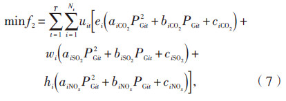 式中f1-调度模型的经济目标函数。 2.2 污染物排放量目标函数