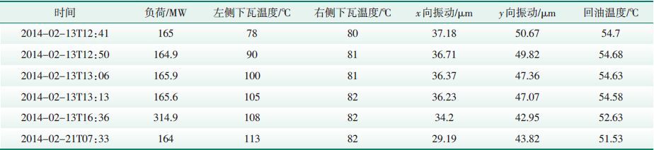 (1) 轴承左侧瓦块温度测点损坏,显示轴承温度高是虚假信号。