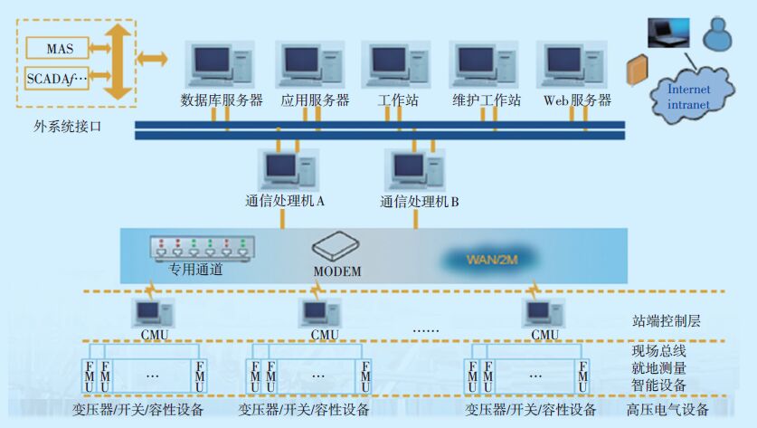 (1) 就地监测层;通过安装于变电站现场的各种状态监测终端,在线完成电力设备状态的数据采集。