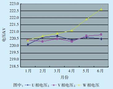 图 6 219电容式电压互感器三相电压变化曲线图 |