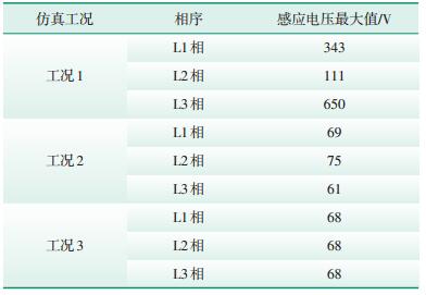 | 表 1 A线路48号塔处感应电压仿真计算结果 |