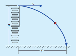 对2支试验套管在立式状态下实施爆破,试验套管炸裂后,忽略空气阻力,瓷质碎片的运动轨迹可以抽象为以一定的初速度抛出、只受重力作用的抛体运动,如图 2所示。