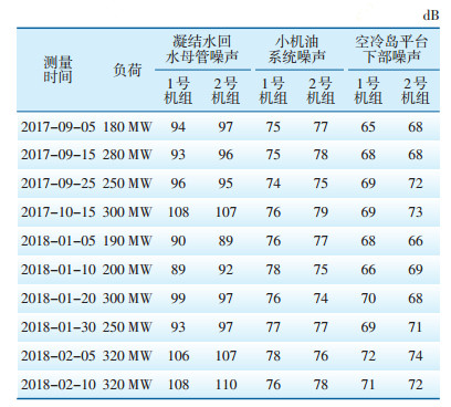| 表 1 1号、2号机组现场噪声测试数据 |