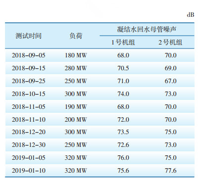 | 表 2 加装防冲击装置后1号、2号机组凝结水回水母管噪声测试数据 |