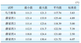 2.2.2 结果分析由人工涂污的两种试片在憎水性迁移4 d后,测得其静态接触角数据如表 1所示。