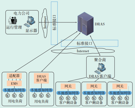 随着DR业务的推广,系统规模不断增大,DR业务系统最终将迁移到云端来实现。客户侧DR业务典型架构见图 1所示。所有参与DR业务的客户端需向DRAS(需求响应自动化服务器)注册,并承诺可以进行负荷削减或转移。一旦DR业务被激活,DRAS会发送初始化指令给所有的客户端,客户端开始执行削减指令,如果负荷可以进行编程处理,则可以同时启动负荷转移程序。