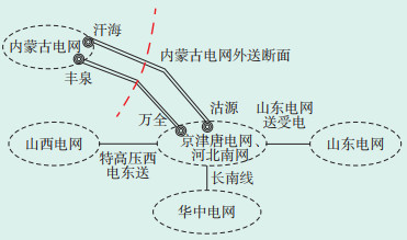 | 图 2 内蒙古电网与华北地区连接示意图 Figure 2 Schematic diagram of connection between Inner Mongolia power grid and North China area |