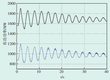 采用小干扰稳定分析方法对不同风电出力下内蒙古电网动态稳定特性进行分析,结果如表 1所示。由表 1可知,内蒙古风电零出力时,阻尼比为0.052,为强阻尼振荡模式;随着风电的不断接入,阻尼比不断提升,动态稳定水平呈提高趋势。