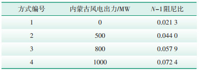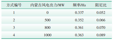 | 表 1 内蒙古风电出力对其动态稳定性的影响(小干扰稳定分析法) Table 1 Influence of Inner Mongolia wind power on its dynamic stability(small disturbance stability analysis) |