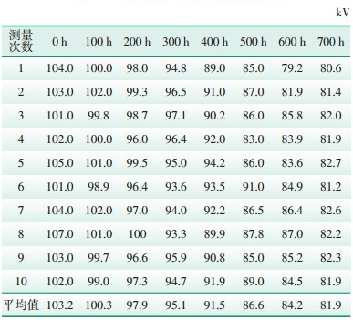 3.2.2 工频闪络电压试验试验每持续100 h,在测试完表面泄漏电流后,紧接着对试品进行闪络电压测试。