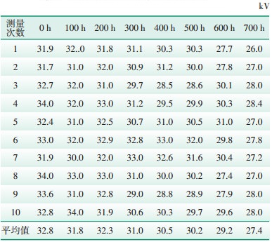 | 表 2 不同试验时刻的泄漏电流测试结果 |