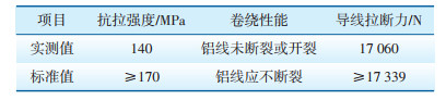 | 表 1 绝缘导线整体及导体铝单丝的力学性能测试结果 |