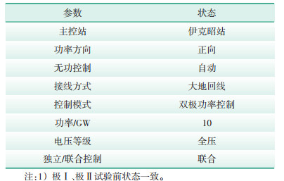 将系统调至试验状态工况,通过RTDS仿真系统模拟逆变站极Ⅰ低端阀组Y/Y绕组某一桥臂3 s脉冲丢失故障。系统试验前状态见表 1。