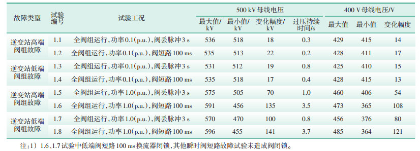 3 整流侧交流电压异常对站内设备的影响多次模拟沂南站不同工况下换相失败后对伊克昭站设备的影响,试验项目及数据见表 2,具体过程及分析如下。