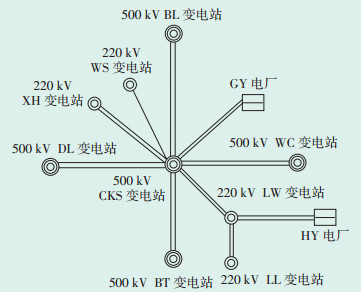 | 图 1 地区电网网架结构图 Figure 1 Regional grid structure diagram |