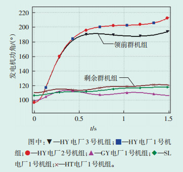 | 图 3 故障时电网部分机组EEAC仿真曲线 Figure 3 EEAC simulation curve of some units in the power grid during a fault |