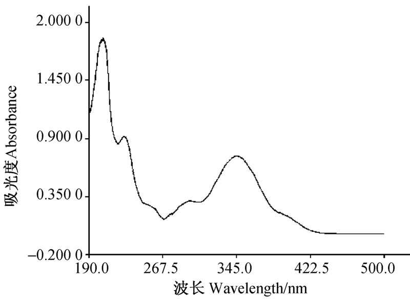 ![]() | 图 3 东莨菪内酯在纯水中的紫外-可见吸收光谱 Fig. 3 UV-Vis absorption spectra of scopoletin in pure water |